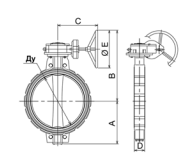 | Ду | A | B | C | D | øE | Вес, кг | ||||||||||||||||||