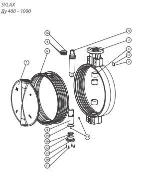 Поворотные дисковые затворы SYLAX управляются при помощи редукторного привода, который имеет червячную передачу. Для установки применяются соединения между фланцами.