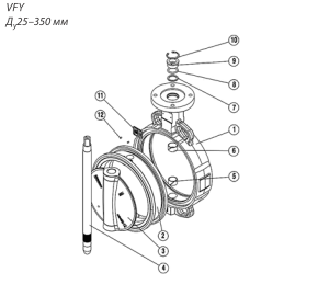 | 1 | Корпус затвора | Серый чугун GG25/высокопрочный чугун GGG40 | |