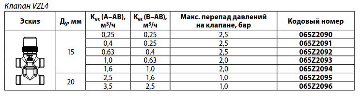 | Протечка через закрытый клапан, % от Kvs | Не более 0,05 от А к АВ, не более 1 от В к АВ | ||||||||||||||||