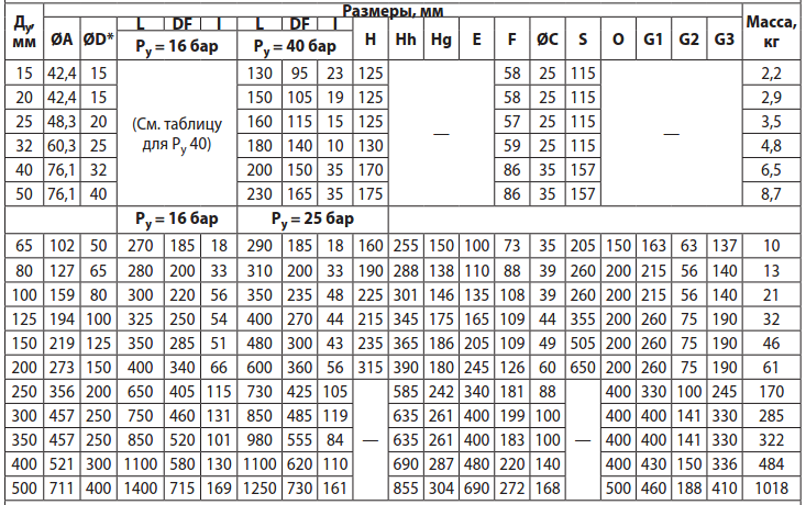 | Условный проход Ду, мм | Кодовый номер | Условное давление Ру и максимальное рабочее давление Рр, бар | Температура перемещае- мой среды, оС | Условная пропуск- ная способность Kvs, м3/ч | |||||