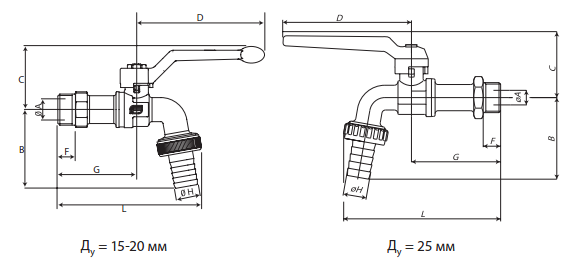| Условный проход Ду | мм | 15 | 20 | 25 | ||||||||||