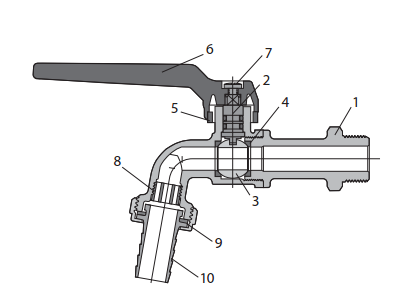 | 10 | Насадка для шланга | Латунь CW617N (Pb ≤ 2,2%) | |||||||||||||