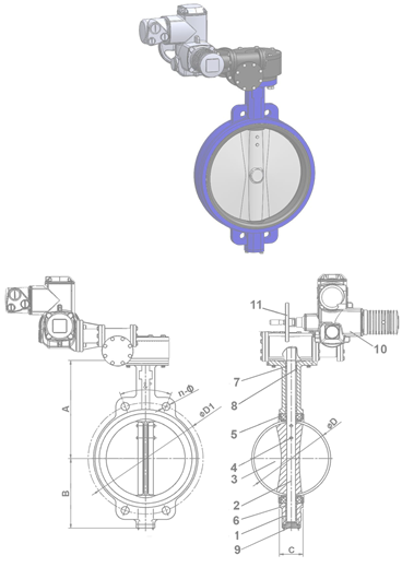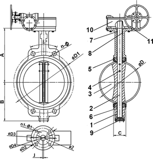 | Ду | A | B | C | ØD | Монтажный фланец | ØD1 | n‐Ø | 4‐M | &° |