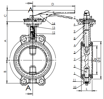 Корпус затвора изготовлен из высокопрочного ковкого чугуна. Модель обеспечивает двухстороннюю герметичность по классу «А». Благодаря исполнению штока из двух частей улучшается пропускная способность. Диск изготовлен из нержавеющей стали, отличается малой толщиной и имеет специальную механическую обработку по краю, что обеспечивает постоянство крутящего момента.