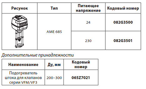 | Подогреватель штока для клапанов серии VFM | 65–125 | 065Z7020 | |||||||||||