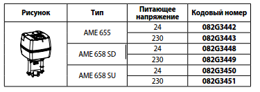 | Тип электропривода | AME 655 | AME 658 SD, SU | ||||||||||||||||