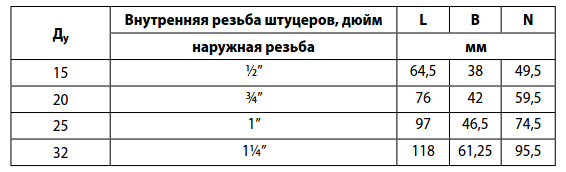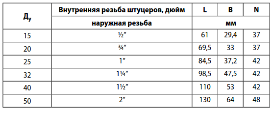 | Ду | 15 | 20 | 25 | 32 | 40 | 50 |