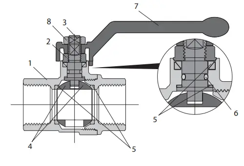 | 5 | Уплотнение шара | Тефлон PTFE | ||||||||||