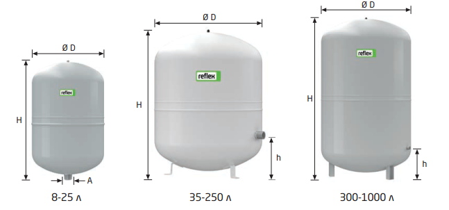 Расширительные баки Reflex NG рассчитаны на применение в отопительных и охладительных коммуникациях. Эти резервуары подходят как для жилого, так и для промышленного сектора. Модели NG выпускается в объеме 8-140 л, в отличие от баков серии N — аналогичных по характеристикам, но с большим объемом.