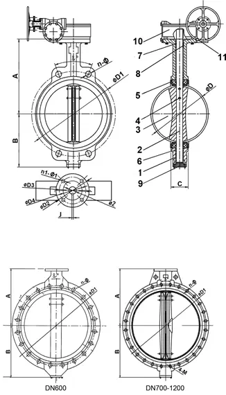 | 600 | 24" | 210 | 165 | 125 | 102 | 70 | 3 | 20 | 50,6 | 4‐M20 | F16 | F10 | 4‐Ø12 | 6 | 30 | 2560 | 640:1 | 0,43 | 0,32 | 160 | 45 |